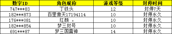 以下为本次部分惩罚名单,官方一如既往对游戏中的作弊行为进行严厉处理,并保留对第三方软件制作团队诉诸法律的权利,因此请大家远离第三方软件切勿以身试法,遵守公平竞技原则,共同维护和谐梦三!