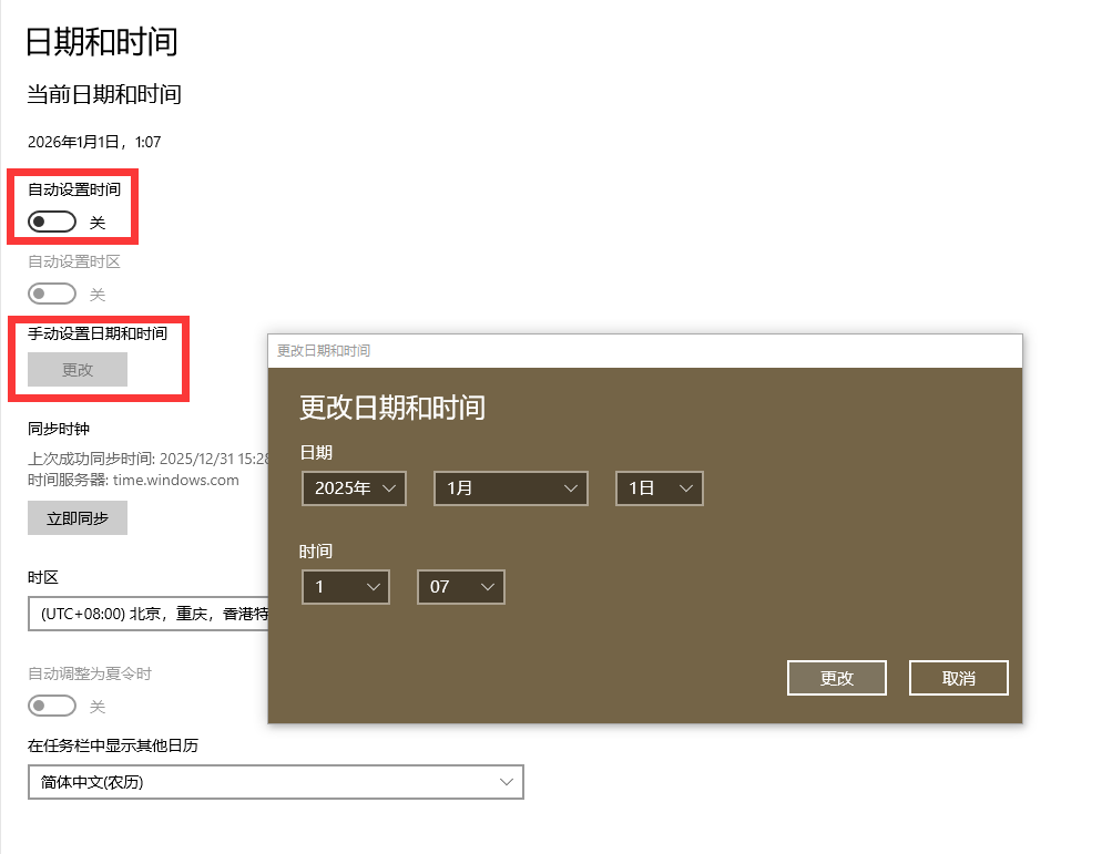 当前部分七星合一大区玩家出现登录异常问题,出现问题的仙术师们可以先把电脑本地时间改成2025年(原2026年),即可顺利登录。
