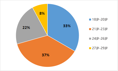 转会名单出炉后,我们发现越来越多的年轻的选手正不断涌入赛场,95后正逐渐成为MPL赛场主力。我们将51名MPL秋季赛注册选手按照3岁年龄差进行划分,得出以下MPL选手各年龄层占比图: