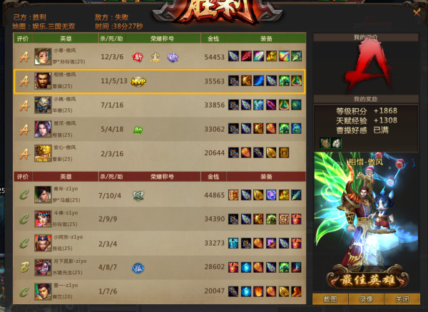 比赛回顾:开局,魏国等级许愿的水镜先生帮助上路梦马超击杀吴国程普一血。7分,率先出到恩惠帷幄靴的吴国程普带领士兵摧毁魏国下路一塔。14分,魏国梦马超在上路带线之际被吴国多人围攻致死。19分,魏国方刷新场上第一个炎魔后双方在中路发生团战,吴国华雄率先切入大招限制魏国水镜先生并将其击杀,队友曹操切入击杀孙玲珑,随后吴国趁势拿下炎魔,此时吴国以21:6比分大幅度领先魏国。29分,吴国突袭正在打boss的魏国,吴国华雄找准时机先手并刷新大招限制魏国水镜先生及糜竺二人,随即队友梦孙玲珑开始输出并击杀魏国三人后摧毁魏国中路高地。33分,吴国再次推进,吴国曹操率先切入大招控制魏国二人,队友补充伤害击杀梦马超及张纮二人后一并摧毁魏国剩余两路高地。35分,吴国再次拿到场上炎魔,直接吹起号角配合超级兵一鼓作气推向魏国主基地并将其摧毁,获得本局比赛胜利。
