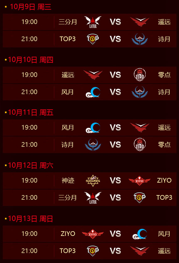 10月6日,MPL秋季常规赛第11个比赛日在遥远2:0神迹,三分月2:0风月的比赛结果中结束。第2周三分月和遥远均以三场全胜收场,目前三分月以总积14分独占积分榜第1的位置,遥远后来居上与本周两胜的诗月同列积分榜第2位。