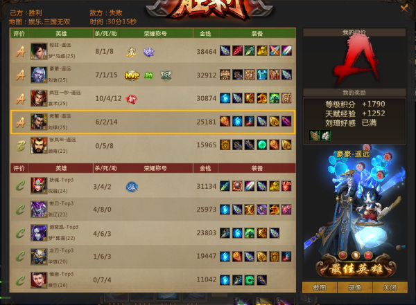 比赛回顾:开局3分,魏国梦郭嘉游走敌方野区,率先讨伐吴国梦马超一血。11分,双方在吴国野区遭遇,魏国张辽将吴国顾雍斩杀,吴国刘表则技能贴身击杀魏国梦郭嘉,随后魏国张辽在队友帮助下斩杀刘璋,完成双杀,随后吴国袁术支援赶到击杀魏国糜竺,队友刘表将魏国张辽斩杀。19分,吴国开始中路推进,魏国华雄先手大招斩杀吴国顾雍后,带有双BOSS物品的吴国梦马超开启御魔,站桩输出击杀魏国张辽、华雄及祝融,拿到三杀,此时吴国以20:12领先魏国。22分,吴国梦马超在队友保护下击杀魏国炎魔,之后便吹起号角,进攻魏国上路高地,吴国袁术找到机会,开启大招便切入敌方高地,先手羊仗控制魏国糜竺,并一套技能将其带走,队友梦马超则摧毁魏国上路高地。26分,吴国等人转战中路,刘表冲向前排吸引火力,己方袁术击杀魏国华雄,接着梦马超将魏国糜竺斩杀,队友刘璋则在队友助力下收割魏国其余三人人头,拿到三杀。吴国趁此机会,一举摧毁魏国剩余两路高地。29分,吴国攻破魏国主基地,遥远再次获胜。