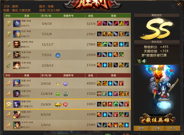 14-16分钟,魏国打出两波漂亮团战,但在17分钟,吴国中路推进时,魏国5人全部阵亡,魏国中路二塔被拆,吴魏人头28:15。18分钟,两军河道再度开战,魏国三人阵亡,吴国大乔顺势击杀炎魔拿到复活,队友糜竺拿到号角。20分钟,魏国boss点三人阵亡,大乔拿到双杀,文鸯抢到雪蛤膏,吴国开始进攻魏国高地。吴国刘表和文鸯顶在前排,己方大乔强势输出连斩十名敌将,魏国难以防守三路高地被破。24分钟,大乔攻破魏国铜雀台,吴国诗月获得胜利。
