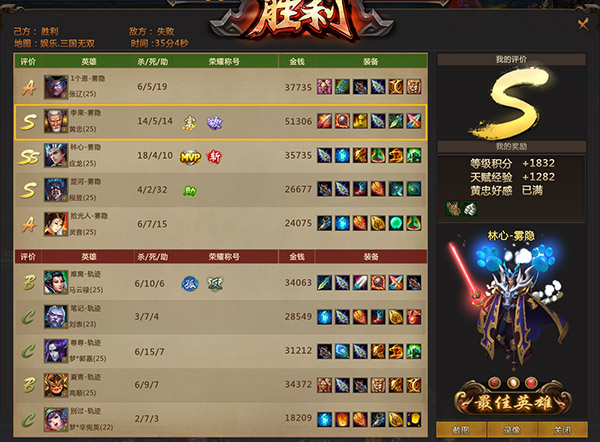 27分钟,吴国进攻魏国中路高地,吴国张辽切入分割对方阵型,魏国梦郭嘉、高顺先后被击杀,吴国顺势攻破魏国中路。随后,吴国转攻魏国下路高地,在输出点黄忠率先阵亡的不利情况下,吴国依靠前排张辽分割战场打赢团战。31分钟,吴国进攻魏国上路二塔,吴国张辽抗住敌方大部分伤害而未阵亡,帮助己方团灭了魏国,吴国趁势攻破魏国上路高地,吴魏人头比来到了42:23,魏国已经被逼到绝路。33分钟,吴国进攻魏国下路高地,吴国张辽深入敌后再次成功分割战场,魏国梦郭嘉、高顺先后被击杀,魏国人员不齐无力防守,吴国一鼓作气攻破魏国仅剩的下路高地。随后,魏国铜雀台被摧毁,恭喜吴国雾隐战队取得胜利。