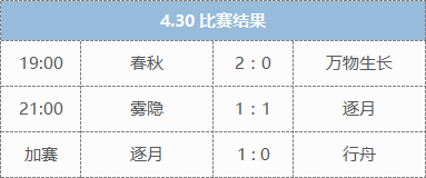 2020MSPL夏季常规赛于4月30日正式结束,当晚春秋虽然2:0击败万物生长,获得三分,但因逐月1:1战平雾隐,导致其直接丧失晋级季后赛的资格。常规赛正赛结束时,因逐月与行舟总积分均为11分,且此前常规赛双方胜负关系为1:1,所以进行了Bo1加赛局。最终,逐月1:0战胜行舟,以常规赛第三名的身份挺进季后赛阶段。