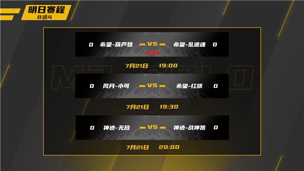 7.21 SOLO海选赛16进8、8进4赛程预告