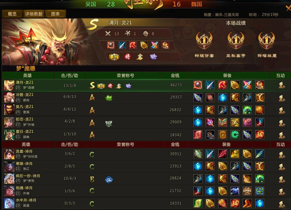 19分钟,吴国方顺利斩杀上古炎魔,吴国于吉斩获炎魔之焰及上古号角。22分钟,吴国方吹响上古号角中路推进,魏国孙鲁班先行控制吴国于禁,配合己方梦*孙玲珑先行将其打至残血,吴国顾雍及时三技能保住于吉,吴国董卓则大招控制魏国梦*孙玲珑,配合己方于吉输出强杀魏国梦*孙玲珑,吴国于禁二技能配合董卓大招再控魏国张辽,吴国方合力将其击杀,吴国于吉则独自攻破魏国中路高地。至此,吴魏人头比23:9,吴国方占据8000经济优势。25分钟,魏国孙鲁班先手大招控制吴国于吉,魏国萝莉果断大招跟进,但吴国顾雍及时三技能保护,于吉丝血反杀连斩魏国萝莉、华佗,吴国董卓钩回魏国梦*孙玲珑,配合队友将其击杀,吴国方一举再破魏国下、上两路高地。26分钟,魏国*铜雀台被破,吴国方取得最终胜利。