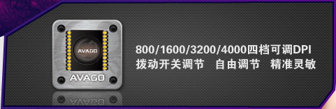 800/1600/3200/4000DPI,拨动开关调节,自由调节,精准灵敏。
