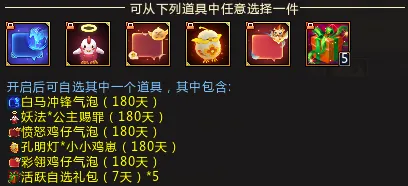 所有经验值奖励中,共计可得神奇鸡毛*60,集齐100鸡毛能合成新的神乎其鸡自选包(增加酆都*阴阳净土/千秋*九龙双刃等玩具),或妖星冰握、太极阴阳剑。