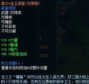 武器点评:16的三围属性加成,以及66%的技能加成,是平民玩家不错的选择,当然属性不怎么好,并不推荐用这个双持。