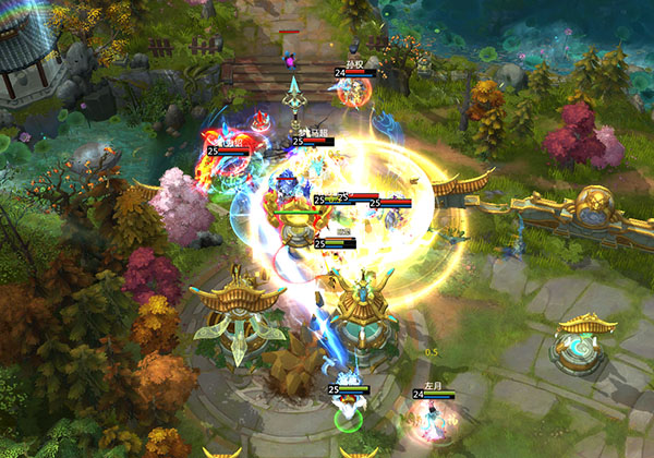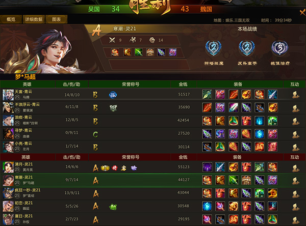 开局2分钟,吴国夏侯渊上路压制魏国魏延,魏国黄月英绕后围剿夏侯渊,魏延帮助黄月英击杀吴国夏侯渊,魏国黄月英拿下一血。8分钟,吴国夏侯渊入侵魏国野区抢夺资源,魏国梦袁绍一套技能击杀夏侯渊守住野区。14分钟,魏国梦马超下路带线发育,吴国4人集结集火打残梦马超,魏国3人利用传送门支援救下梦马超,魏国黄月英在队友的帮助下拿下三杀,吴魏人头比7:13,魏国经济领先4K。19分钟,魏国快速封印己方BOSS上古炎魔,蹲守在外的吴国左月利用木牛流马粉碎了炎魔之焰,魏国黄月英拿下号角。22分钟,魏国吹响号角但并未攻破吴国任何一路高地。