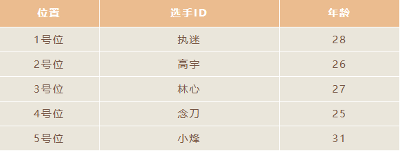 新增队员:【2号位】高宇,【4号位】念刀