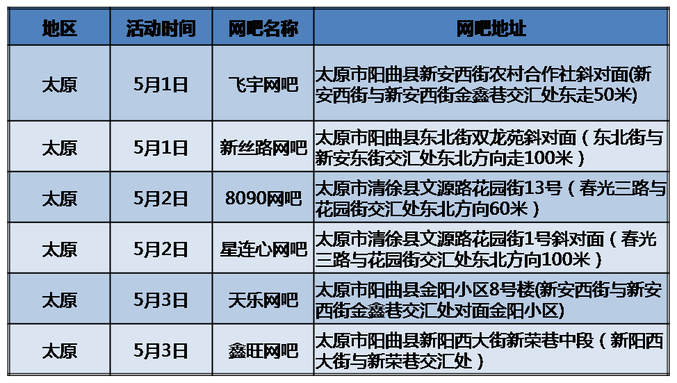 本周迎新季活动网吧地址如下: