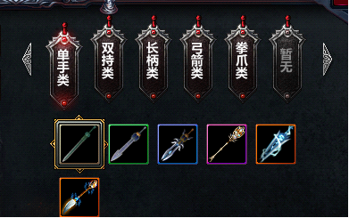 分为 单手类、双持类、长柄类、弓箭类、拳爪类五种类型。