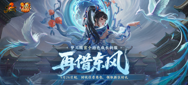 嘿嘿没想到吧,15周年庆还有大惊喜!梦梦不语,只一味地甩出重磅炸弹——梦三国首个特色成长新区「再借东风」,将于9月26日火爆开启测试!