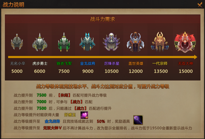 (7000分开启战力匹配;19500分开启无双大神全服排名显示,调整前为22500分)