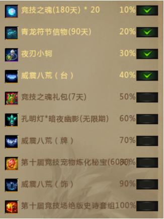 历届竞技场台牌饰自选礼包(7天)=竞技之魂*120+ 10万士兵