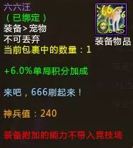 5. 新增竞技场专属宠物【六六汪】