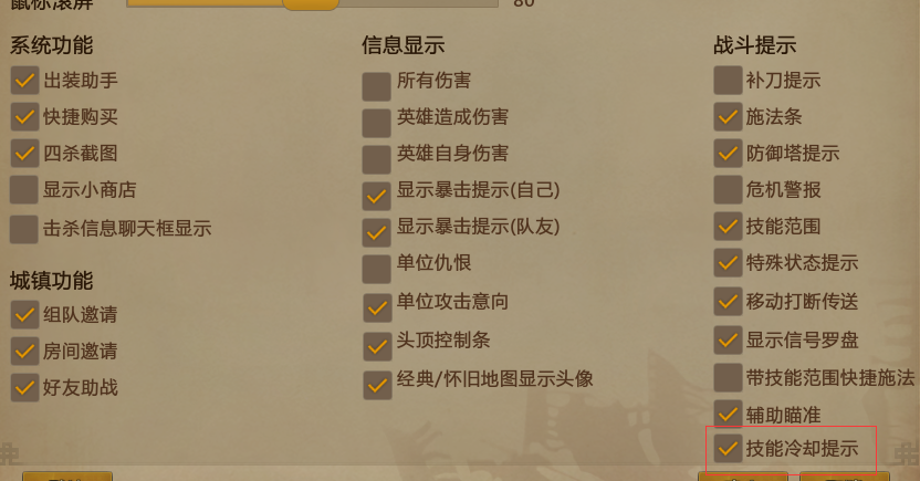 2. 功能设置新增【技能冷却提示】,用于控制单局内技能冷却提示开关