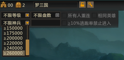 3. 房间神兵值限制新增22万/24万/26万的选择