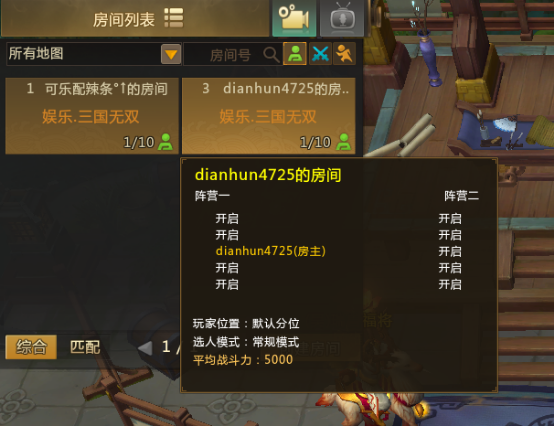 1.现在房间列表可以直接查看房间内玩家的平均战斗力/神兵值。