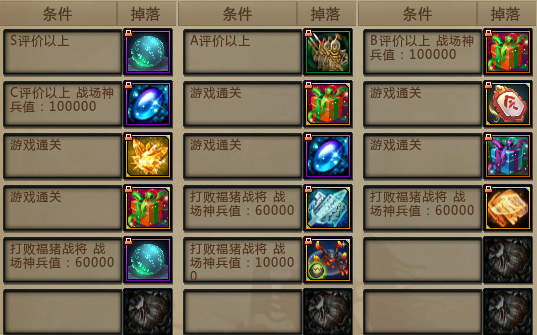 地图为5人地图,难度根据队伍战场神兵适配,奖励如下: