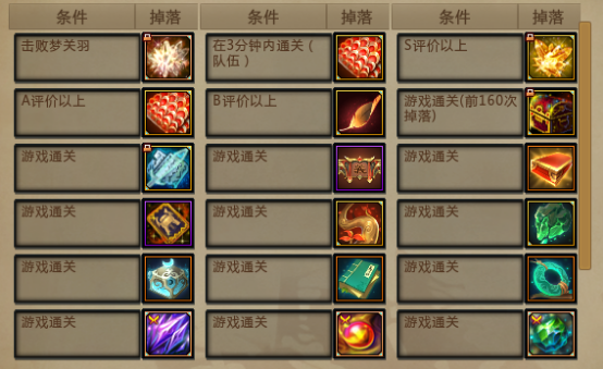 前160次通关【挑战梦*关羽】必定掉落【梦*关羽密宝】宝箱,开启160次后必定获得宝箱内全部奖励!