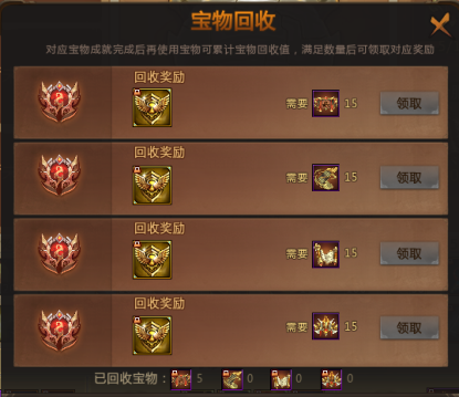 1.每种不同的宝物到达20个成就数量上限后,可在额外提交使用并开始累计回收数量。
