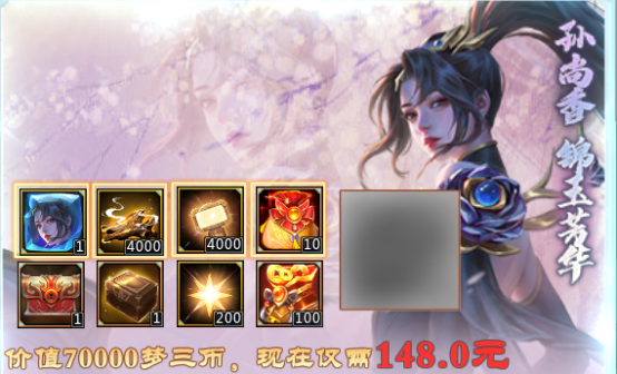 价值70000梦币的锦玉芳华礼包(售价148元),内有: