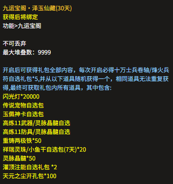 九运宝阁*泽玉仙藏(30天):开启12次全得