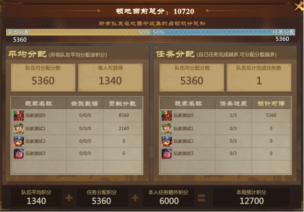 若全队都没能完成任务,则本局的占领积分还是按照全队平均分配。