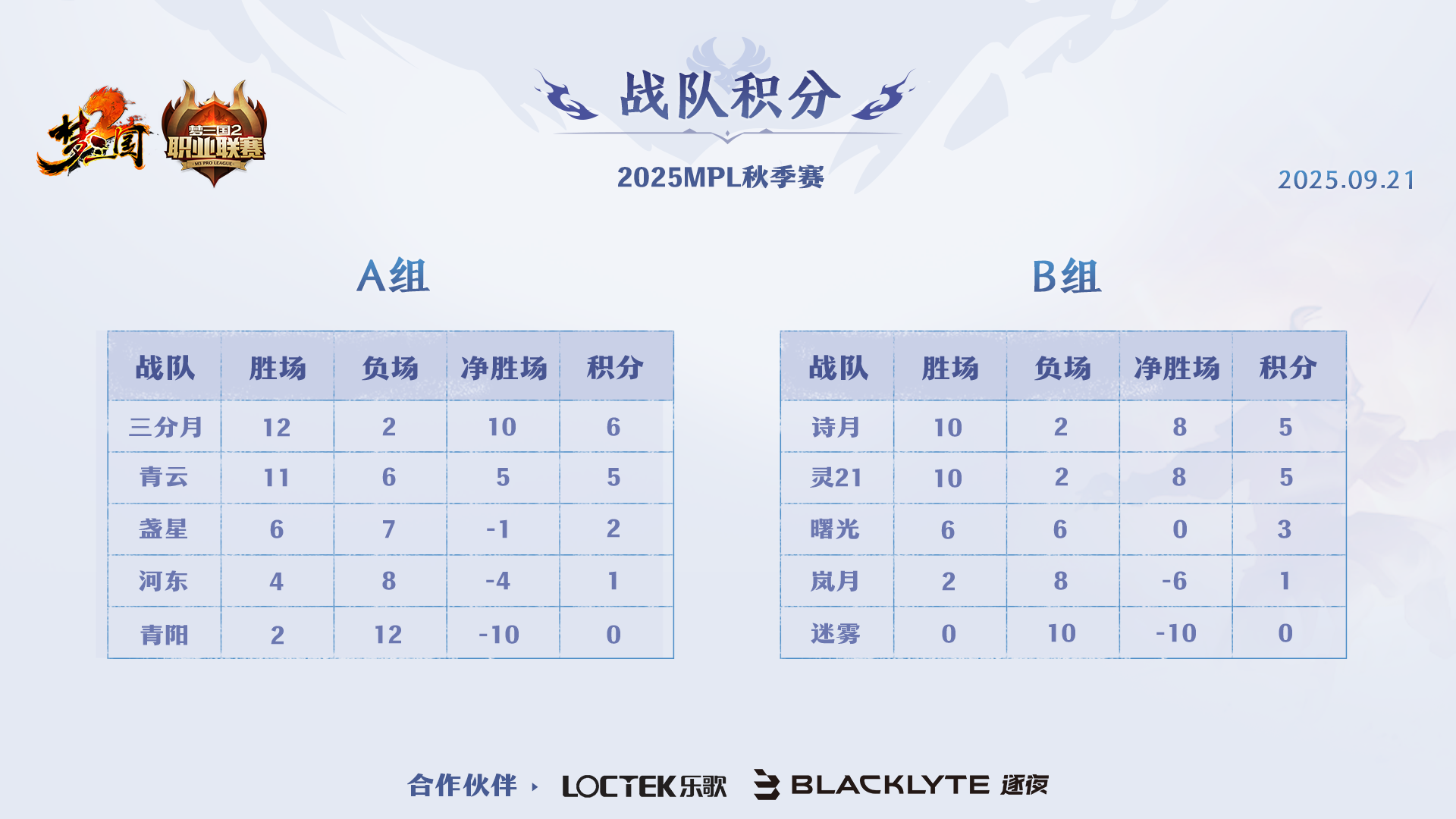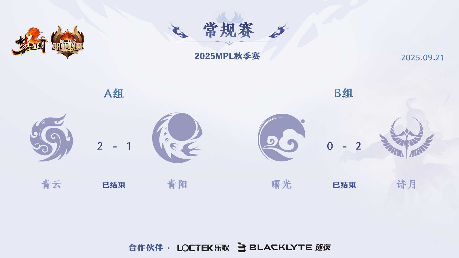 常规赛 9.21 赛果及积分排名