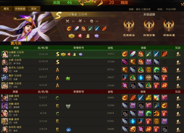 第一局:三分月步步为营拿下首胜,山鬼谣黄月英领跑经济斩获最佳(撰写人:河一)