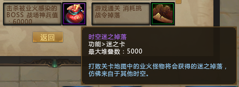 听说打败这些业火怪物(第三章至第六章关卡地图、挑战boss、官渡地图中有几率出现)即会掉落丰厚的道具和一些奇异的钱币。钱币仿佛来自其他世界,无法在梦三大陆中流通,故而人们称之为“时空货币”。三族智者们正在寻找这些时空货币,收集一定数量,可以在任务中提交以换取奖励。