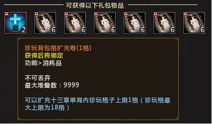 [珍玩背包]:每位仙术师当前解锁的背包格数量即为每局能带出的珍玩数量,珍玩背包上限为18格,可通过完成十三章成就任务解锁珍玩背包格。