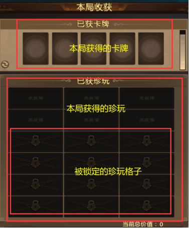 [珍玩替换]:如单局内珍玩背包已满,再获得更高价值珍玩时,将自动替换低价值珍玩。
