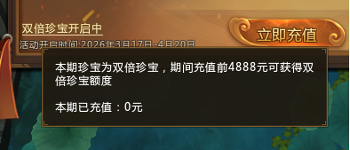 2026年3月17日- 4月20日,期间充值前4888元可获得双倍珍宝额度