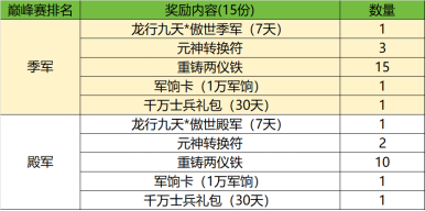 娱乐、官渡、英霸、荆州争霸每个地图按战力划分8个军衔大段,每个大段又有5个军衔小段,除最初始的小段外,每达到一个军衔均可领取1份奖励。