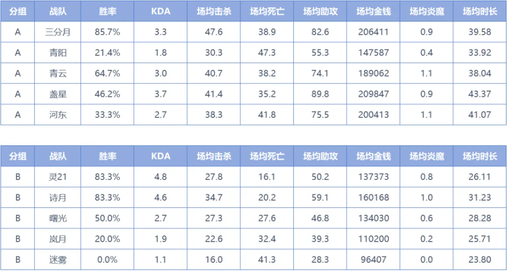 一周战队数据:迷雾一胜难求,盏星超长耗时战