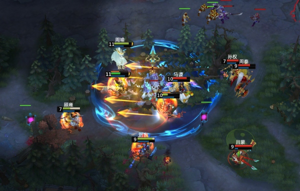 开局4分钟,魏国方四人下路抱团,成功击杀吴国夏侯渊,魏国吕蒙完成敌将讨伐。5分钟,吴国夏侯渊携手队友顾雍,攻破魏国下路一塔。7分钟,吴国方抱团再破魏国上路一塔,吴魏比分2:3,吴国方经济领先5000。11分钟,吴国方推进下路,吴国夏侯渊和刘表先手开团击杀魏国核心梦庞德,随后吴国方五人又将魏国周泰围杀,紧接着吴国夏侯渊大招控住魏国马谡,吴国方0换3打赢团战,吴魏比分5:7,吴国方经济领先8000。