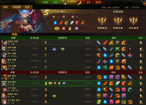 13分钟,双方在中路爆发团战,魏国祝融开启麒麟臂打出高额输出接连击杀吴国文丑和梦袁绍并配合队友击杀夏侯渊,随后魏国方摧毁吴国中路一二塔撤退,此时吴魏比分12:19,魏国经济领先10000。16分钟,魏国方摧毁吴国上路二塔后魏国左月开启大招控制吴国众人,魏国祝融紧跟输出接连击杀吴国夏侯渊、马腾和文丑,随后魏国方摧毁吴国上路高地撤退。18分钟,上古炎魔刷新后被魏国方击杀,祝融获得炎魔之焰及上古号角。19分钟,魏国吹响上古号角进攻吴国中路高地,吴国夏侯渊想要利用大招先手开团却被魏国方集火击杀,随后魏国方接连摧毁吴国中下路高地。21分钟,伴随三路强化兵线魏国摧毁吴国虎神塔,魏国获得本场胜利。