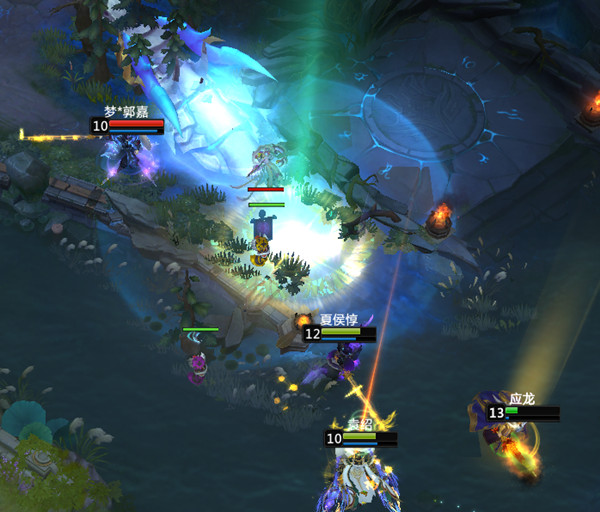 开局2分钟,吴国夏侯渊利用下路传送门传送至上路帮助文丑击杀魏国吕蒙,文丑完成敌将讨伐。7分钟,吴国摧毁魏国下路一塔。8分钟,双方在下路爆发团战,吴国夏侯渊利用一二技能控制配合马腾击杀魏国暗影吕轲和周泰后入侵魏国远古野区资源。9分钟,魏国进攻吴国上路二塔,吴国夏侯渊利用大招先手控制配合队友击杀魏国祝融后被魏国吕蒙大招控制,紧接着吕蒙衔接一技能控制配合三技能击杀吴国梦袁绍和顾雍,此时魏国周泰等人赶到支援,魏国左右利用三技能配合周泰一技能控制接连击杀吴国文丑和夏侯渊。11分钟,魏国祝融和吕蒙持续推进接连摧毁吴国下路一二塔后回访上路击杀吴国文丑和马腾。