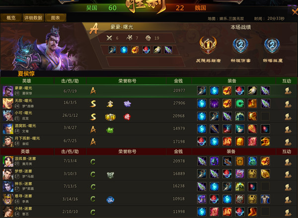 16分钟,双方在上路爆发团战,魏国方因为经济差异遭到吴国方围剿击杀,魏国众人接连阵亡。17分钟,双方在中路爆发团战,吴国梦庞德开启御魔青钢枪击杀魏国梦马超后击杀魏国李典,魏国梦郭嘉击杀吴国袁绍后被吴国应龙和文鸯围剿击杀,随后吴国方进攻魏国中路二塔,魏国众人复活后赶到回防却依然不敌吴国方攻势,魏国黄月英、曹丕、李典、梦马超被接连击杀,此时吴国比分达到56。18分钟,吴国应龙跳入魏国中路高地配合文鸯大招击杀魏国黄月英,吴国梦庞德以身为饵吸引魏国方火力,应龙看准时机利用三技能配合二技能打出控制击杀魏国李典,随后吴国方接连击杀魏国梦马超和梦郭嘉,至此吴国比分达到60获得本场胜利。