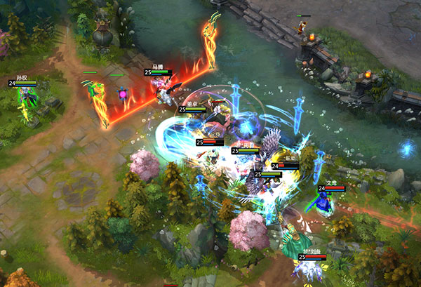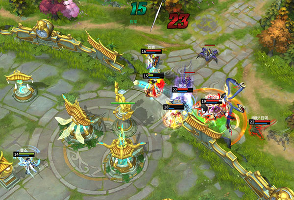 开局5分钟,吴国周瑜中路收线补充经济,魏国暗影吕轲一套技能击杀周瑜拿下一血。8分钟,魏国乐进、暗影吕轲入侵吴国下路野区,吴国夏侯惇遭到暗影吕轲先手,乐进跟进补充伤害收割吴国夏侯惇。12分钟,吴国周泰上路收线发育,魏国刘表先手将周泰控住,梦马超跟进补充伤害斩杀周泰,吴魏人头比8:11,魏国经济领先9K。18分钟,魏国集合中路突进,吴国人员过于分散被魏国打了一波措手不及,魏国乐进在队友的掩护下打出高额伤害三杀,魏国无伤击杀吴国4人后攻破其中路高地,吴魏比分15:25,魏国经济领先2.6W。