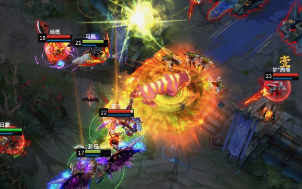开局1分钟,魏国梦刘备下路与吴国梦马超互相消耗,吴国梦马超利用‘灵石’反杀梦刘备拿下一血。8分钟,吴国梦周瑜入侵魏国野区掠夺资源,魏国马腾、顾雍合力打残梦周瑜,魏国应龙绕后支援补充伤害收割梦周瑜。15分钟,魏国集合进攻吴国下路二塔,吴国梦马超前排抗住魏国众多伤害,魏国击杀梦马超后准备撤退,吴国分兵合围团灭魏国,吴魏人头比19:19,双方经济几乎持平。20分钟,吴魏中路爆发炎魔争夺战,吴国阵容控制充足团战取胜,吴国无伤击杀魏国4名英雄。随后吴国封印魏国BOSS上古炎魔,梦孙策拿下复活,吕蒙拿下号角。