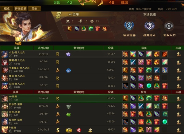22分钟,吴国吹响上古号角进攻魏国中路高地,吴国马腾在吕蒙一技能和大招的帮助下击杀魏国曹节后被魏国方围攻击杀,紧接着吴国暗影吕轲开启大招加入战场配合吕蒙等人击杀魏国梦周瑜和梦关羽,此时吴国上路兵线摧毁魏国上路步兵营。29分钟,吴国暗影吕轲在中路击杀魏国梦周瑜后进攻魏国下路高地,魏国梦关羽和庞德奋力清理兵线但却在吴国孙权和吕蒙大招的控制下被击杀,复活后的梦周瑜抵达战场却不敌吴国方围攻也被击杀,随后吴国摧毁魏国中下路高地。31分钟,第二个上古炎魔刷新后被魏国方击杀,曹节获得炎魔之焰及上古号角,魏国方当即吹响上古号角缓解兵线压力。32分钟,吴国方进攻魏国上路高地,在吴国吕蒙和孙权的强力控制下魏国梦关羽和左月被接连击杀,魏国曹节等人集火击杀吴国马腾但还是被吴国方摧毁上路高地。34分钟,吴国方伴随三路强化兵线摧毁魏国铜雀台,吴国获得本场胜利。