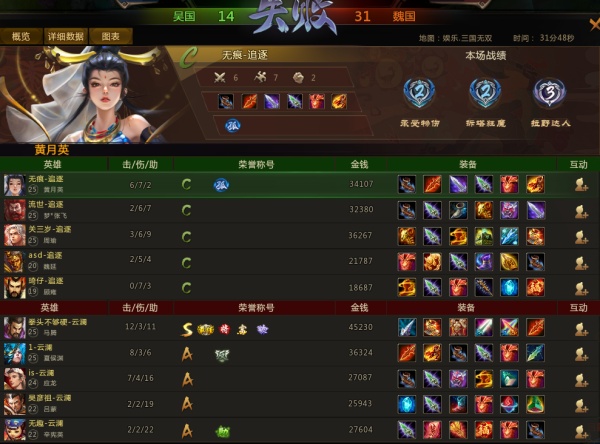 21分钟,吴国吹响上古号角缓解兵线压力。26分钟,魏国马腾进攻吴国方上路高地,吴国梦张飞想要先手进攻马腾却被魏国夏侯渊利用大招换位逼退,紧接着马腾配合吕蒙击杀吴国顾雍后摧毁吴国上路高地,此时吴国黄月英赶回支援配合队友击杀马腾逼退魏国方。27分钟,双方在吴国野区爆发团战,面对魏国辛宪英和吕蒙大招的双重庇护吴国黄月英无力对魏国方造成有效打击被魏国马腾击杀,随后魏国方摧毁吴国下路高地。30分钟,魏国方摧毁吴国虎神塔,魏国获得本场胜利。