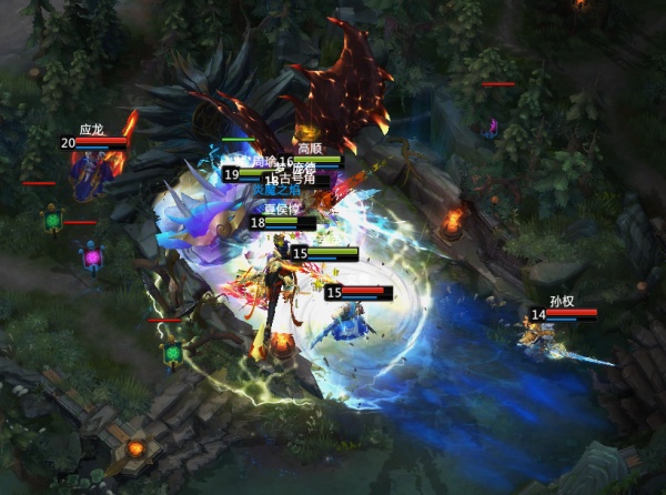 开局3分钟,吴国应龙赶往上路配合布小蛮击杀魏国庞德,应龙完成敌将讨伐。5分钟,吴国方进攻魏国下路一塔,魏国众人及时赶到回放反补下路一塔后逼退吴国众人。6分钟,吴国曹节、布小蛮和应龙组成恶霸三人组进攻上路击杀魏国庞德和梦庞德,紧接着魏国夏侯惇、孙权和马谡赶到支援,魏国孙权先手大招控制恶霸三人组后马谡配合大招收割吴国应龙和顾雍,吴国曹节无路可退也被夏侯惇击杀。7-12分钟,吴国方持续抱团抓单入侵魏国野区扩大经济优势。19分钟,吴国方进攻魏国下路二塔,吴国布小蛮绕后切入魏国后排击杀魏国孙权但在前方的吴国曹节在魏国庞德大招的影响下被秒杀,吴国应龙和顾雍撤离不及被围剿击杀。20分钟,上古炎魔刷新后被魏国方击杀,梦庞德获得炎魔之焰、庞德获得上古号角,此时吴魏比方23:14,吴国经济领先6000。