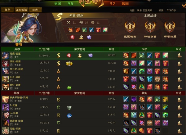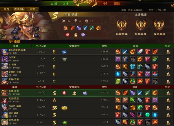 23分钟,魏国吹响上古号角但并未摧毁高地。27分钟,双方在吴国BOSS处爆发团战,魏国梦庞德配合孙权大招控制打残吴国布小蛮将其逼退后配合庞德和夏侯惇的控制击杀吴国应龙和曹节,吴国顾雍撤离不及也被击杀。33分钟,第二个上古炎魔刷新后被魏国方击杀,魏国夏侯惇获得上古号角但炎魔之焰被吴国刘表冲入BOSS处抢到。37分钟,魏国吹响上古号角缓解兵线压力。42分钟,双方在下路爆发团战,魏国孙权被吴国布小蛮先手击杀导致魏国方团战缺乏控制失利,魏国梦庞德、夏侯惇和庞德接连阵亡,随后吴国摧毁魏国下路高地和中路步兵营,此时吴魏比分45:24,吴国经济领先40000。46分钟,上古炎魔刷新后被魏国方击杀,梦庞德获得炎魔之焰、夏侯惇获得上古号角,随后魏国吹响上古号角撤退,吴国方趁机击杀饕餮神主。58分钟,双方在中路爆发团战,魏国孙权利用大招控制配合梦庞德击杀吴国曹节后吴国刘表等人拉扯消耗击杀魏国梦庞德和孙权,此时曹节购买复活重新抵达战场配合队友击杀魏国夏侯惇和马谡,随后吴国方摧毁魏国上路高地。59分钟,魏国方背水一战进攻上古炎魔却不敌吴国方被接连击杀,随后吴国摧毁魏国铜雀台,吴国获得本场胜利。