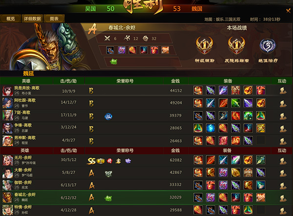 比赛开始2分钟,魏国应龙入侵吴国下路野区抢夺资源,吴国程昱、吕蒙帮助曹节斩杀应龙,吴国曹节拿下一血。6分钟,魏国梦马超、孙权进攻吴国上路一塔,吴国布小蛮先手一套技能打残梦马超,魏国孙权一套技能救下梦马超,梦马超反手收割吴国布小蛮。10分钟,吴国集合中路试探性进攻,魏国应龙先手均未控到吴国英雄,吴国集火快速斩杀魏国应龙、梦马超后撤退,吴魏人头比16:7,吴国经济领先4K。17分钟,吴国4人进攻魏国下路二塔,应龙先手圈回吴国曹节后将其击杀,魏国迅速追击1换5团灭魏国,魏国梦孙玲珑拿下三杀。19分钟,魏国快速封印己方BOSS上古炎魔,孙玲珑拿下复活和号角。21分钟,魏国吹响号角但未能攻破吴国任何一路高地。